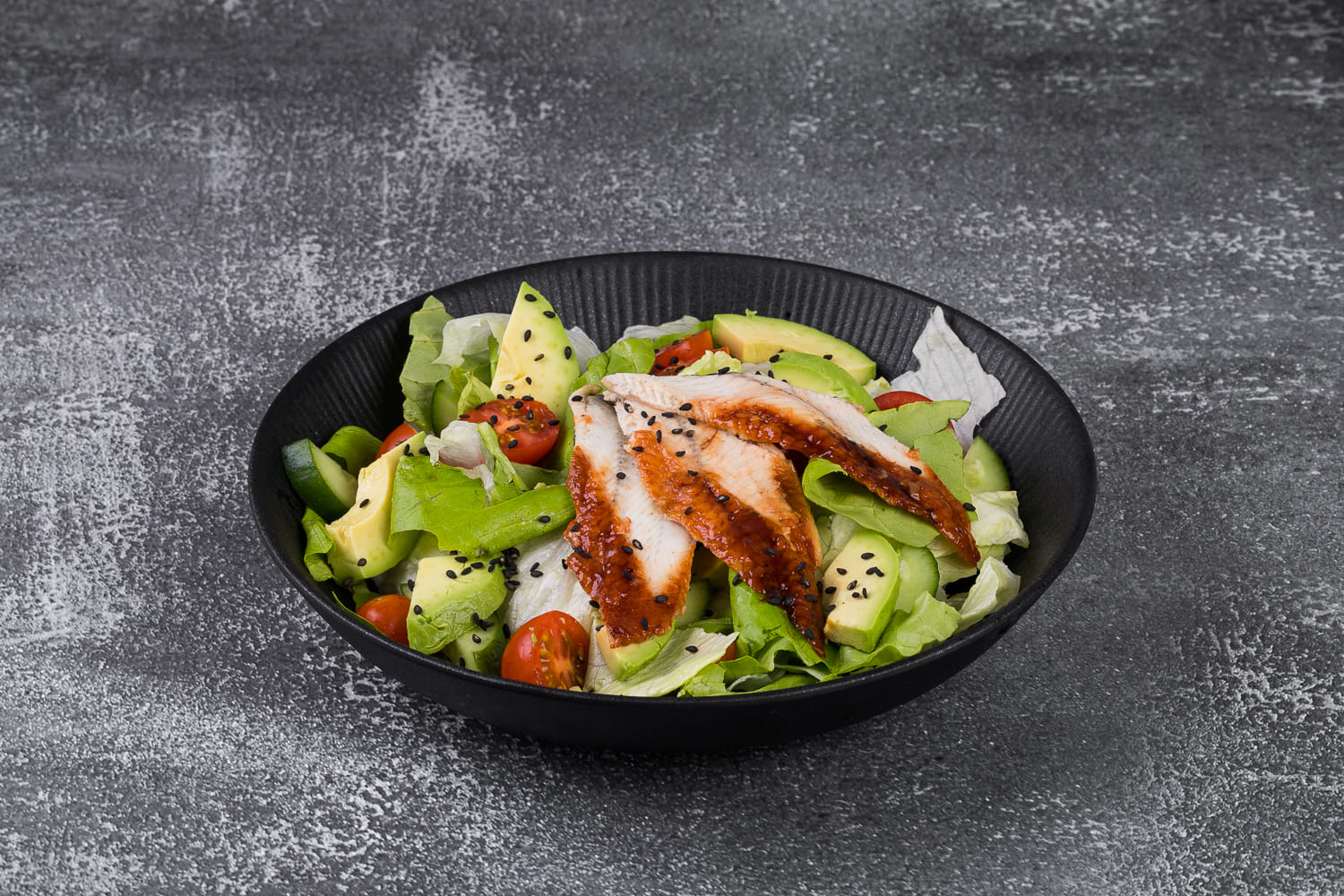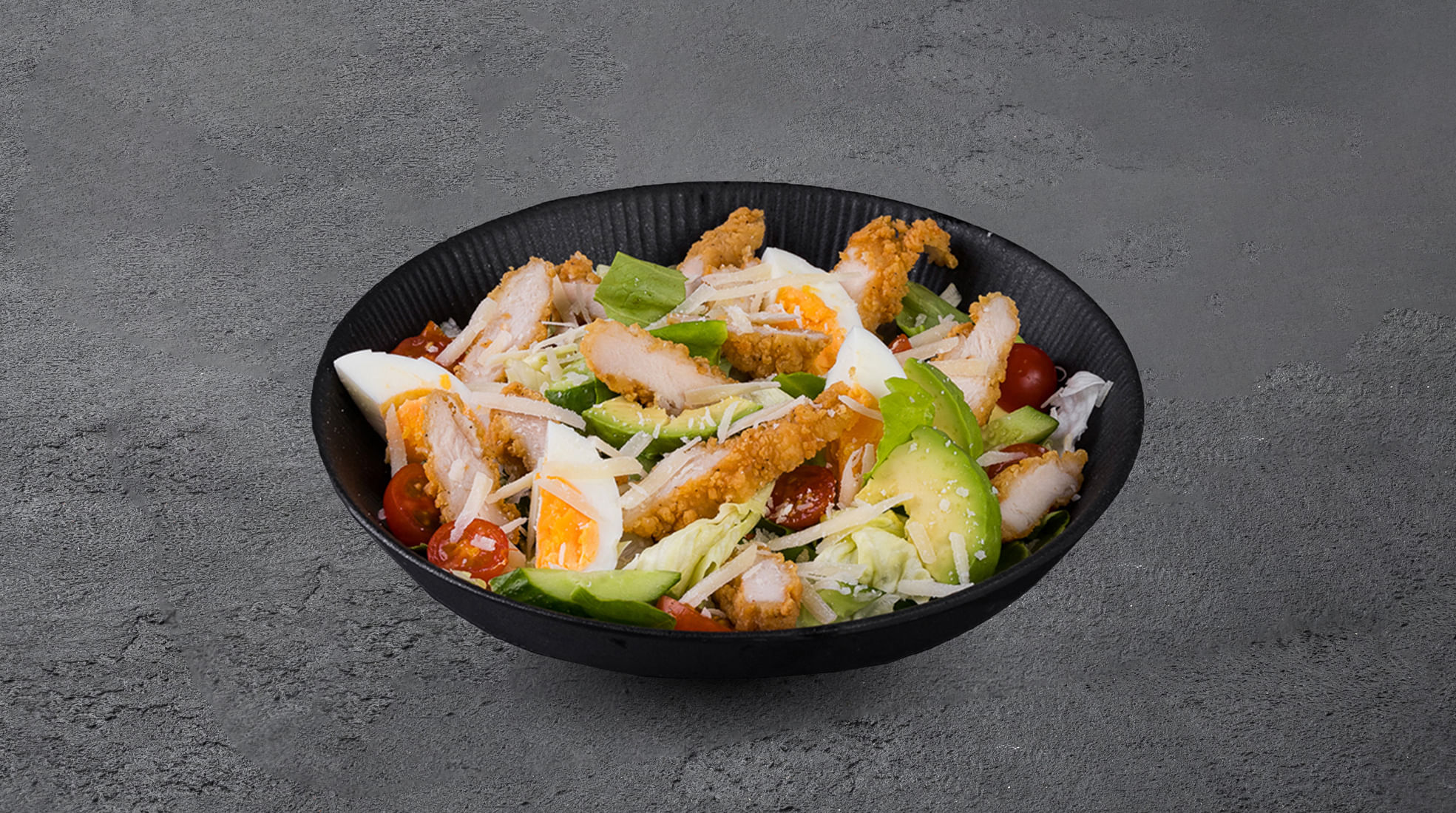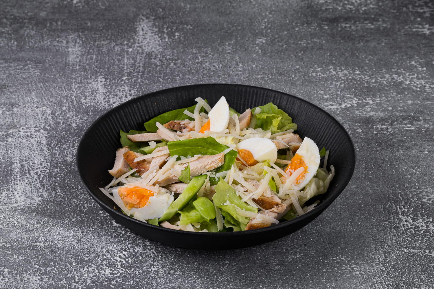 Boston salad, iceberg lettuce, chicken fillet, cucumber, boiled egg, chicken salad dressing, parmesan cheese, 250g.
