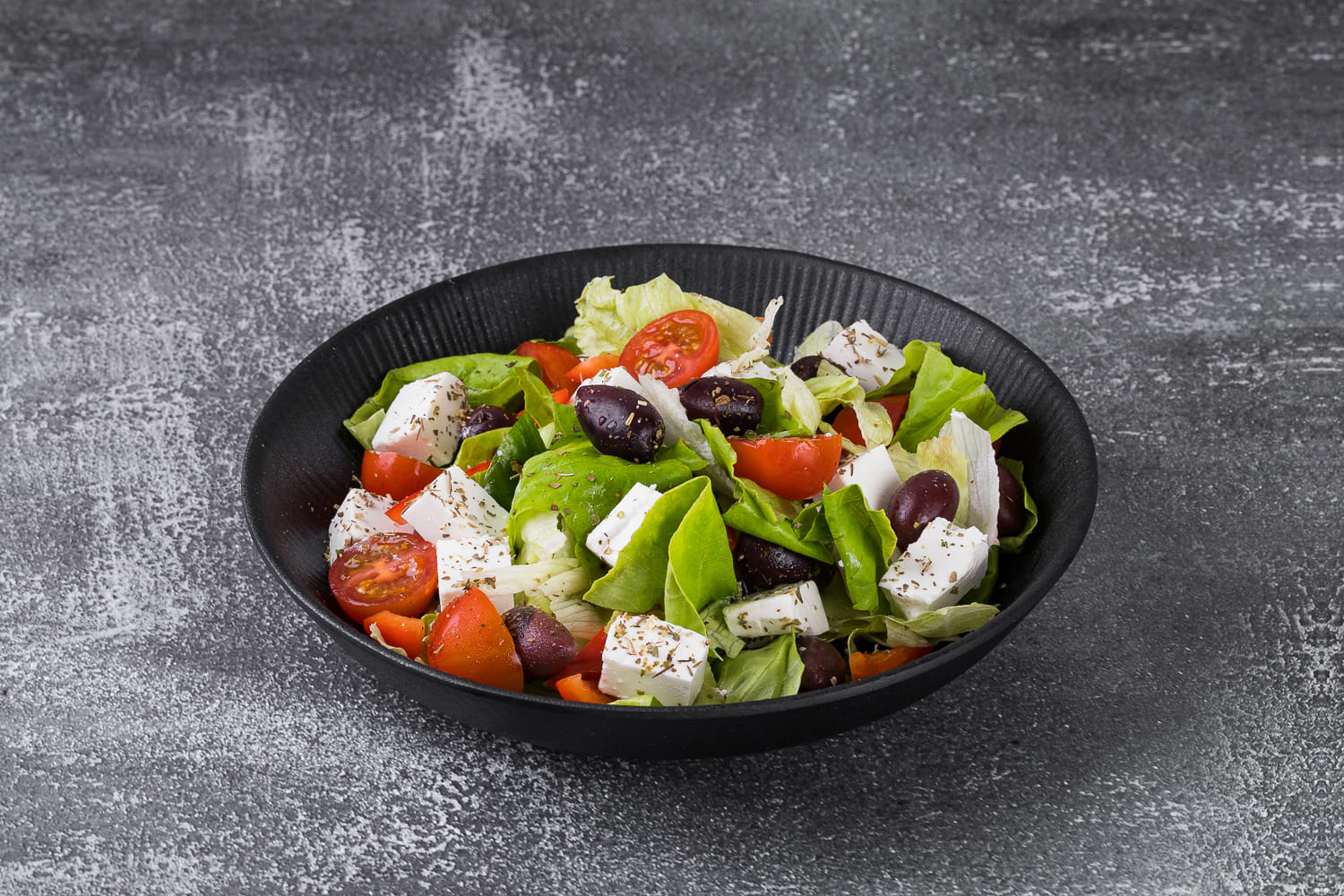 Iceberg lettuce, Boston lettuce, cucumber, cherry tomato, bulg pepper, olives, blue onion, Provence herbs, feta cheese, 300g.
